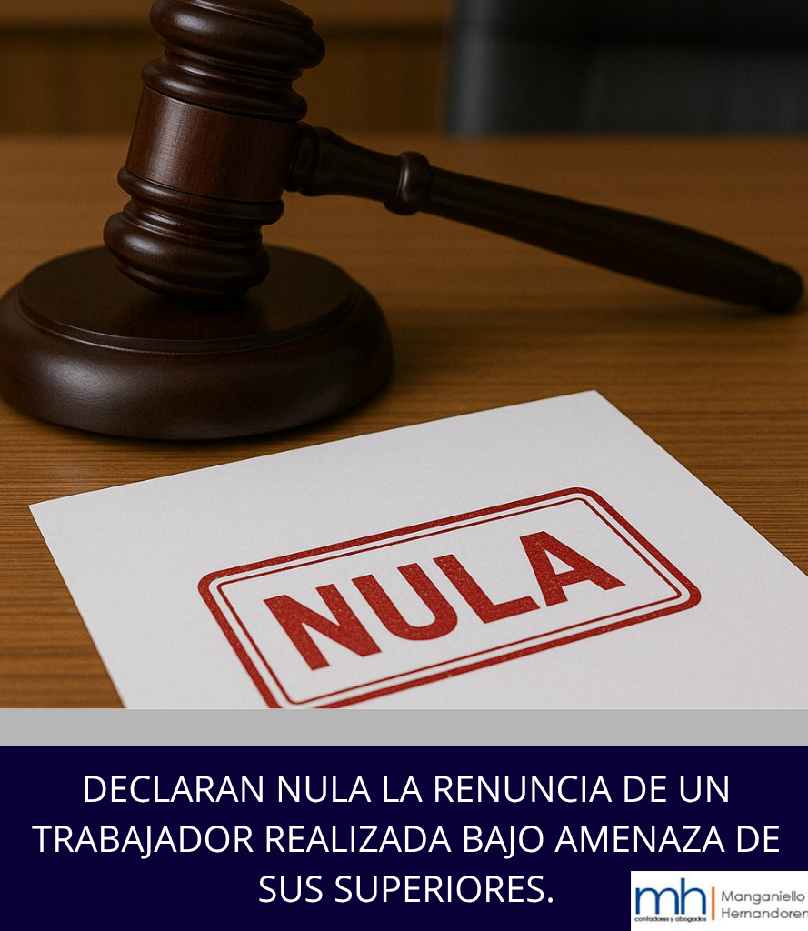 DECLARAN NULA LA RENUNCIA DE UN TRABAJADOR REALIZADA BAJO AMENAZA DE SUS SUPERIORES.