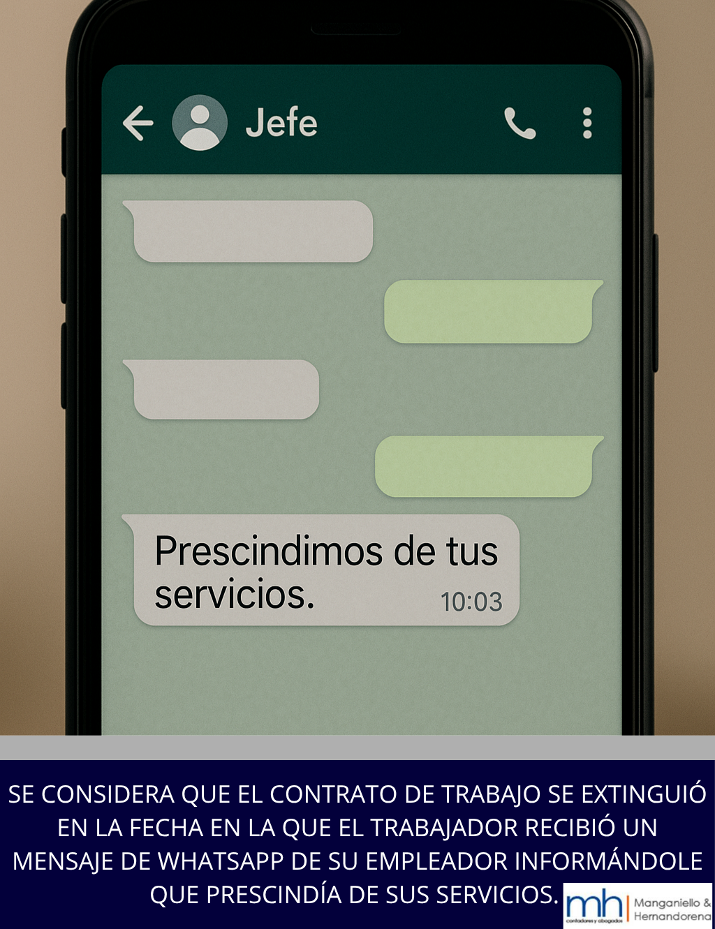 SE CONSIDERA QUE EL CONTRATO DE TRABAJO SE EXTINGUIÓ EN LA FECHA EN LA QUE EL TRABAJADOR RECIBIÓ UN MENSAJE DE WHATSAPP DE SU EMPLEADOR INFORMÁNDOLE QUE PRESCINDÍA DE SUS SERVICIOS.