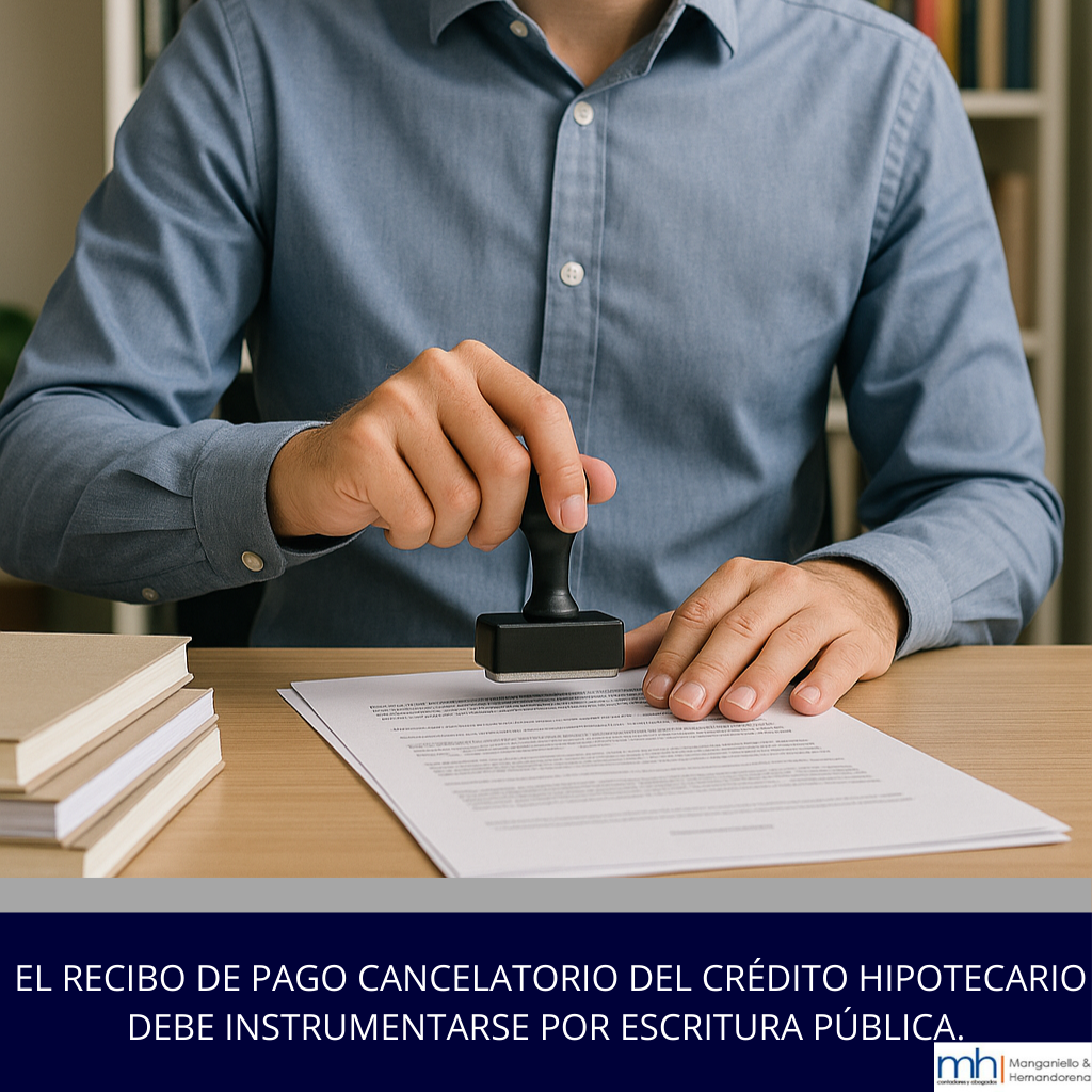 EL RECIBO DE PAGO CANCELATORIO DEL CRÉDITO HIPOTECARIO DEBE INSTRUMENTARSE POR ESCRITURA PÚBLICA.