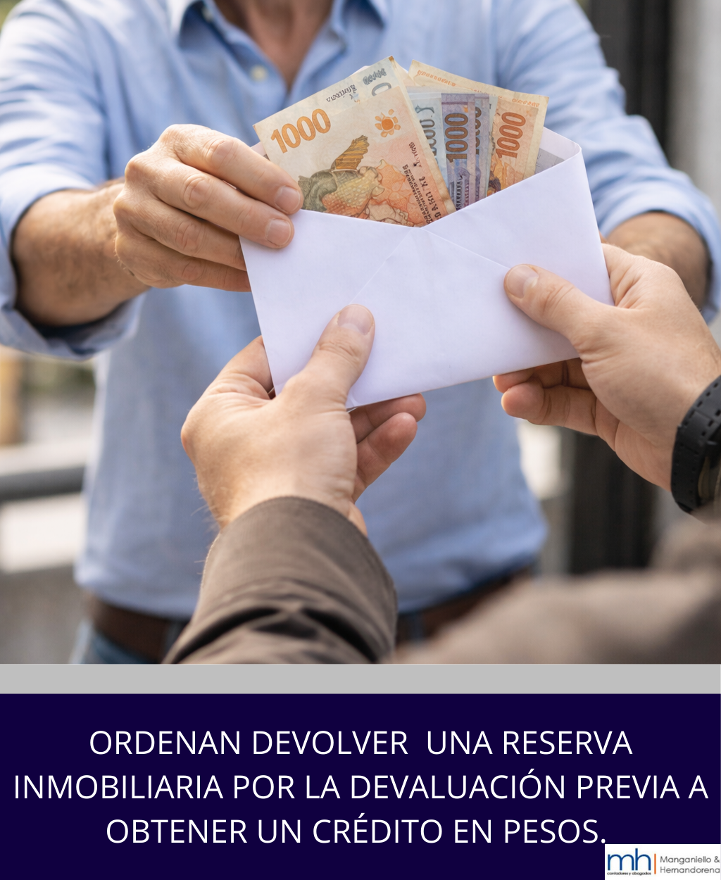 ORDENAN DEVOLVER UNA RESERVA INMOBILIARIA POR LA DEVALUACIÓN PREVIA A OBTENER UN CRÉDITO EN PESOS.