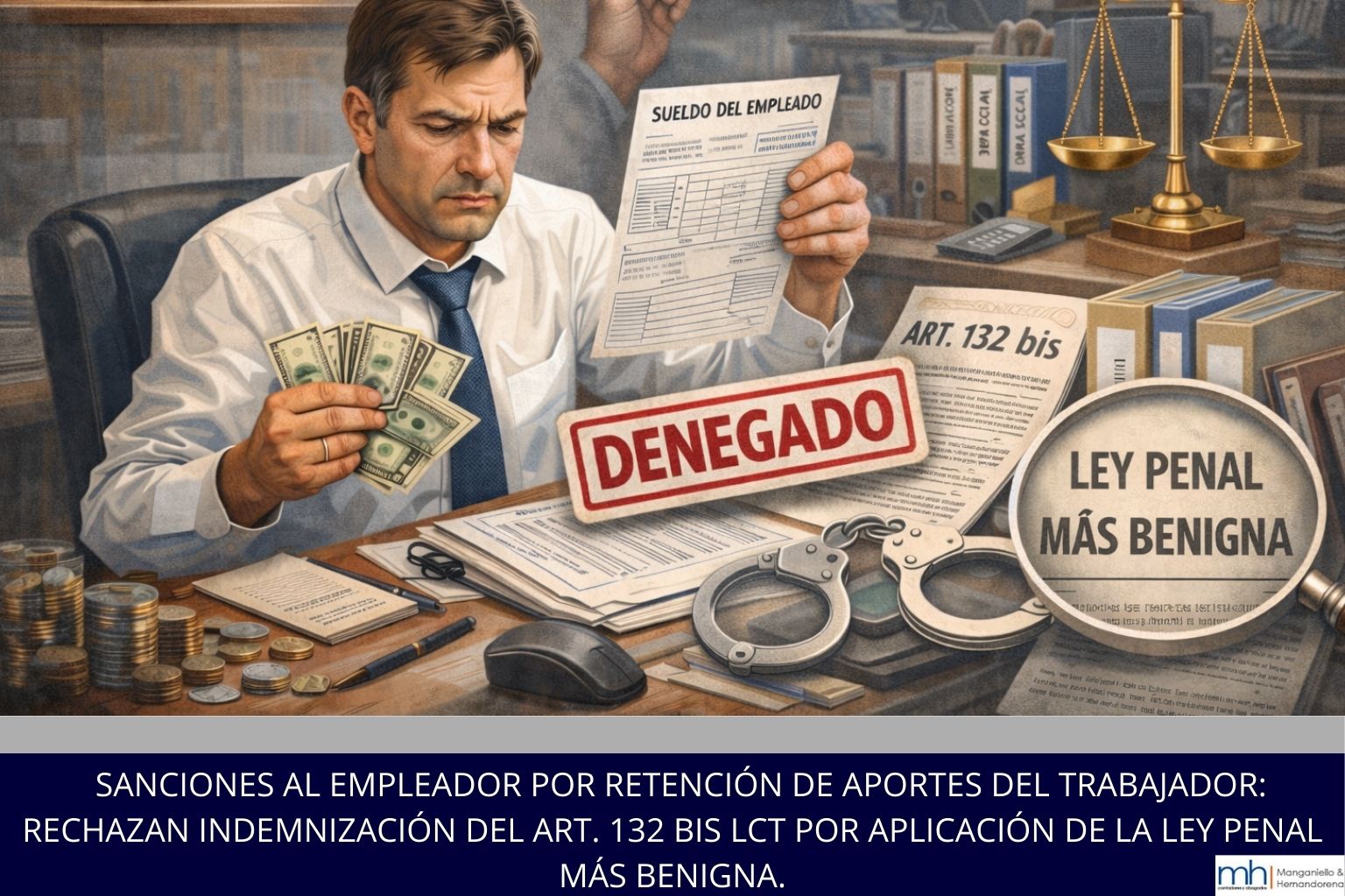 SANCIONES AL EMPLEADOR POR RETENCIÓN DE APORTES DEL TRABAJADOR: RECHAZAN INDEMNIZACIÓN DEL ART. 132 BIS LCT POR APLICACIÓN DE LA LEY PENAL MÁS BENIGNA.